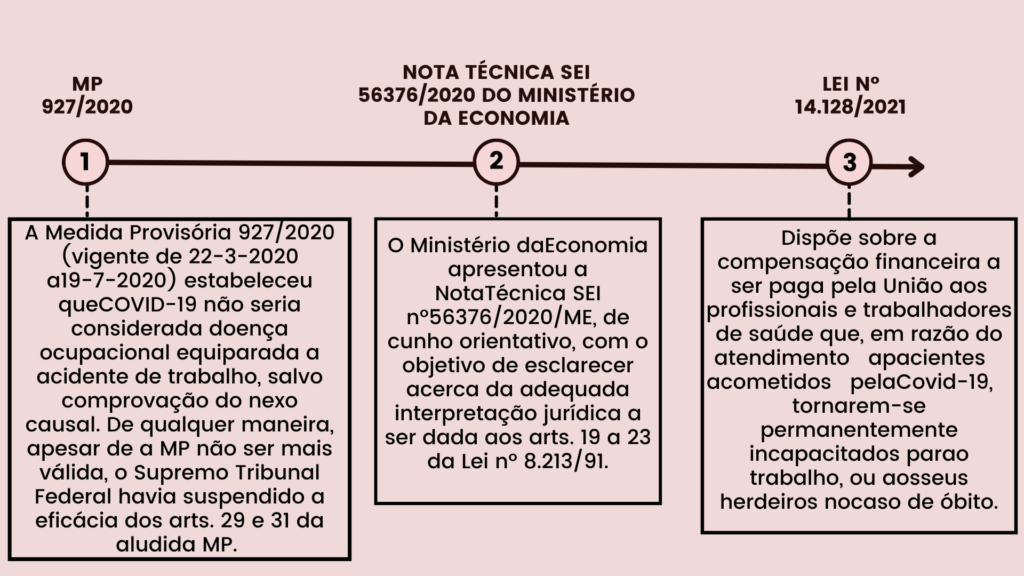 O contágio pelo vírus pode ser considerado doença ocupacional equiparada à acidente de trabalho.