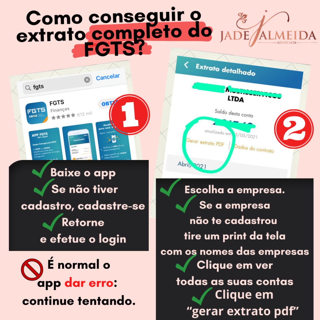 Além disso, é importante que o empregado traga para o advogado o extrato completo dos depósitos de FGTs.