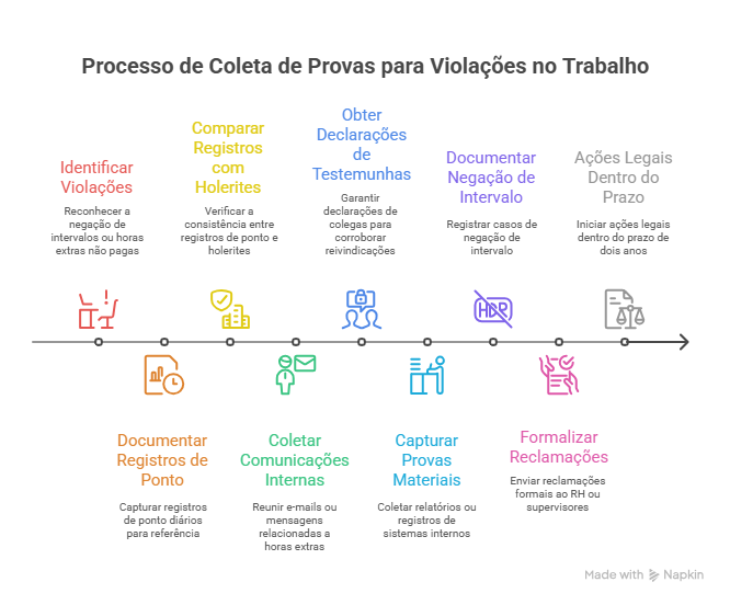 - Testemunhas: Colegas que viram você trabalhando no horário de descanso ou que também foram privados do intervalo;