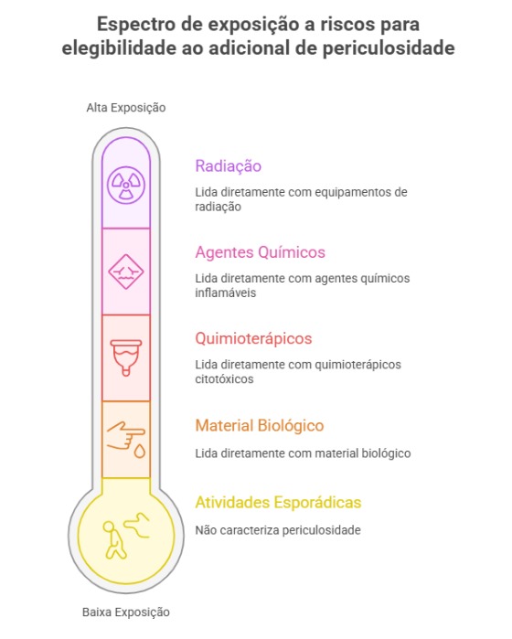- Agentes biológicos (exposição a vírus, bactérias ou fluidos contaminados — embora esta seja uma discussão específica, muitos tribunais reconhecem periculosidade nesses casos).