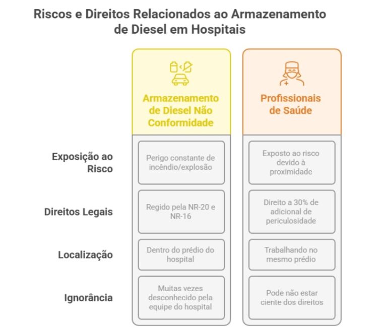 Esse reconhecimento não é por acaso: o ambiente hospitalar, que deveria ser seguro, se transforma em zona permanente de risco quando o tanque de diesel não segue as exigências da NR-20 e excede os limites da NR-16.